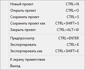 открыть ранее созданный проект |