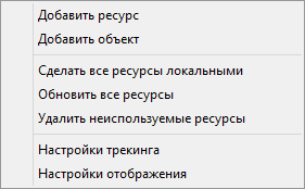Ресурсы, в которой отображается список ресурсов добавленных в проект. Подробнее о ресурсах можно узнать в разделе «Ресурсы»