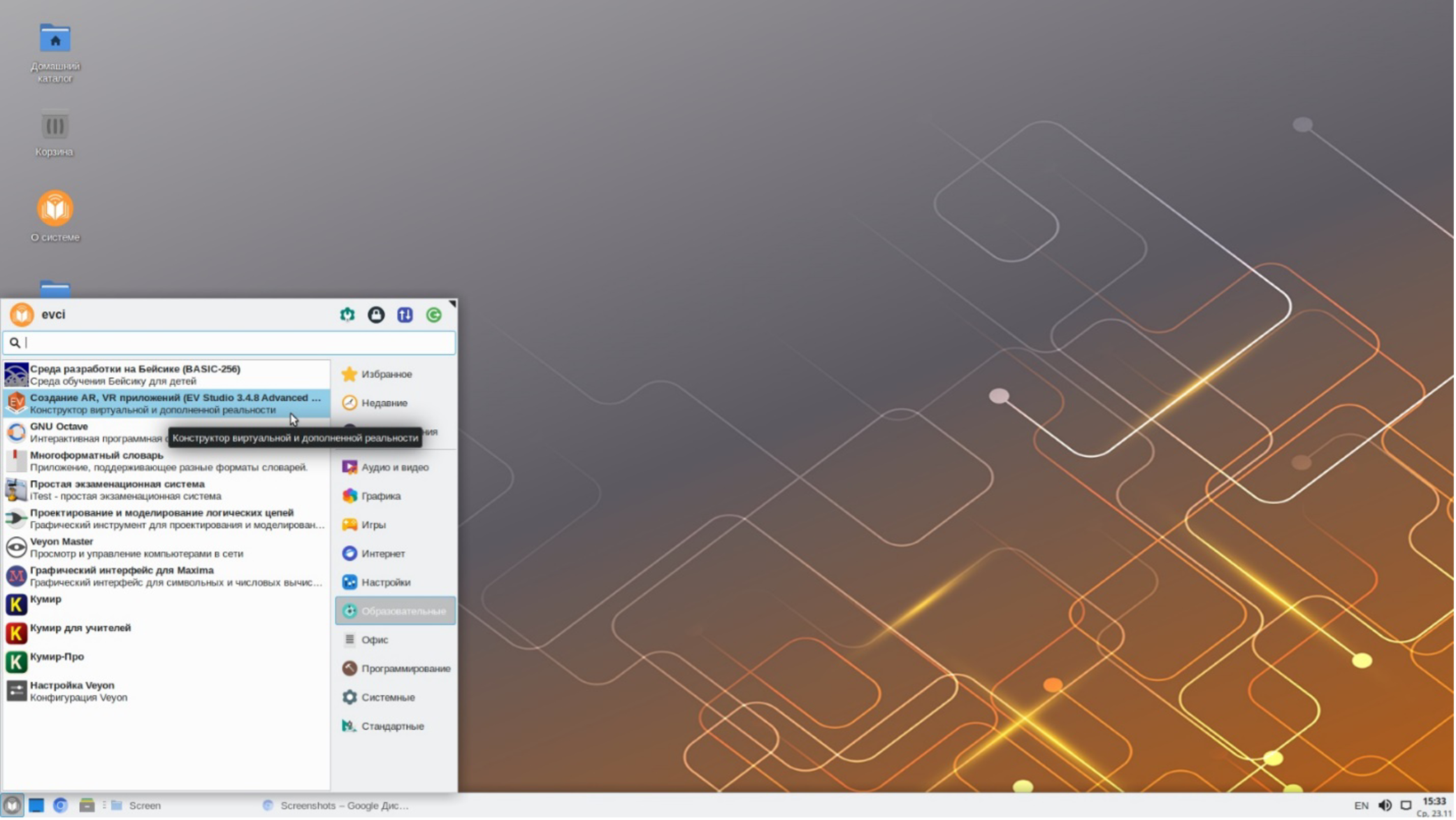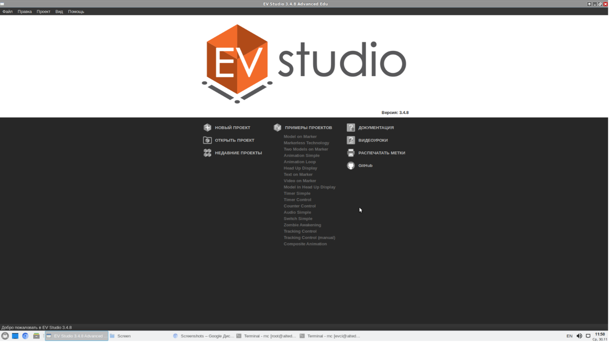 Первый запуск и активация конструктора проектов дополненной и виртуальной реальности EV Toolbox на ПК с OC Альт Образование 10.0 и выше¶