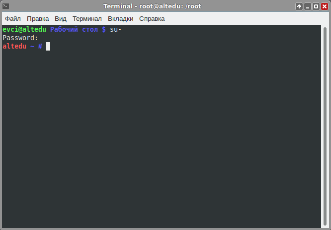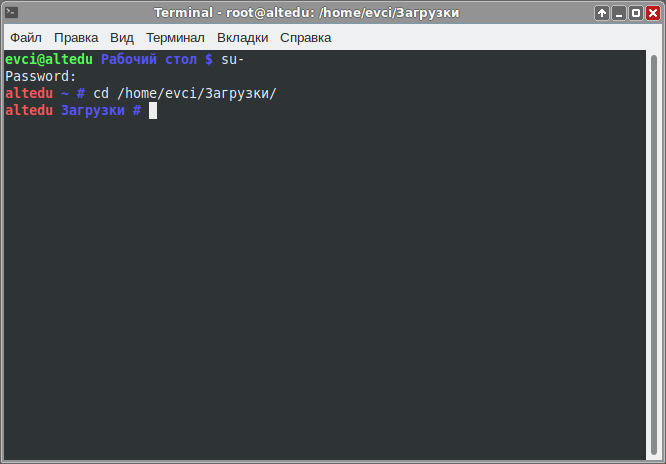 Для установки пакета переключитесь в терминале на суперпользователя (root) с помощью команды su-