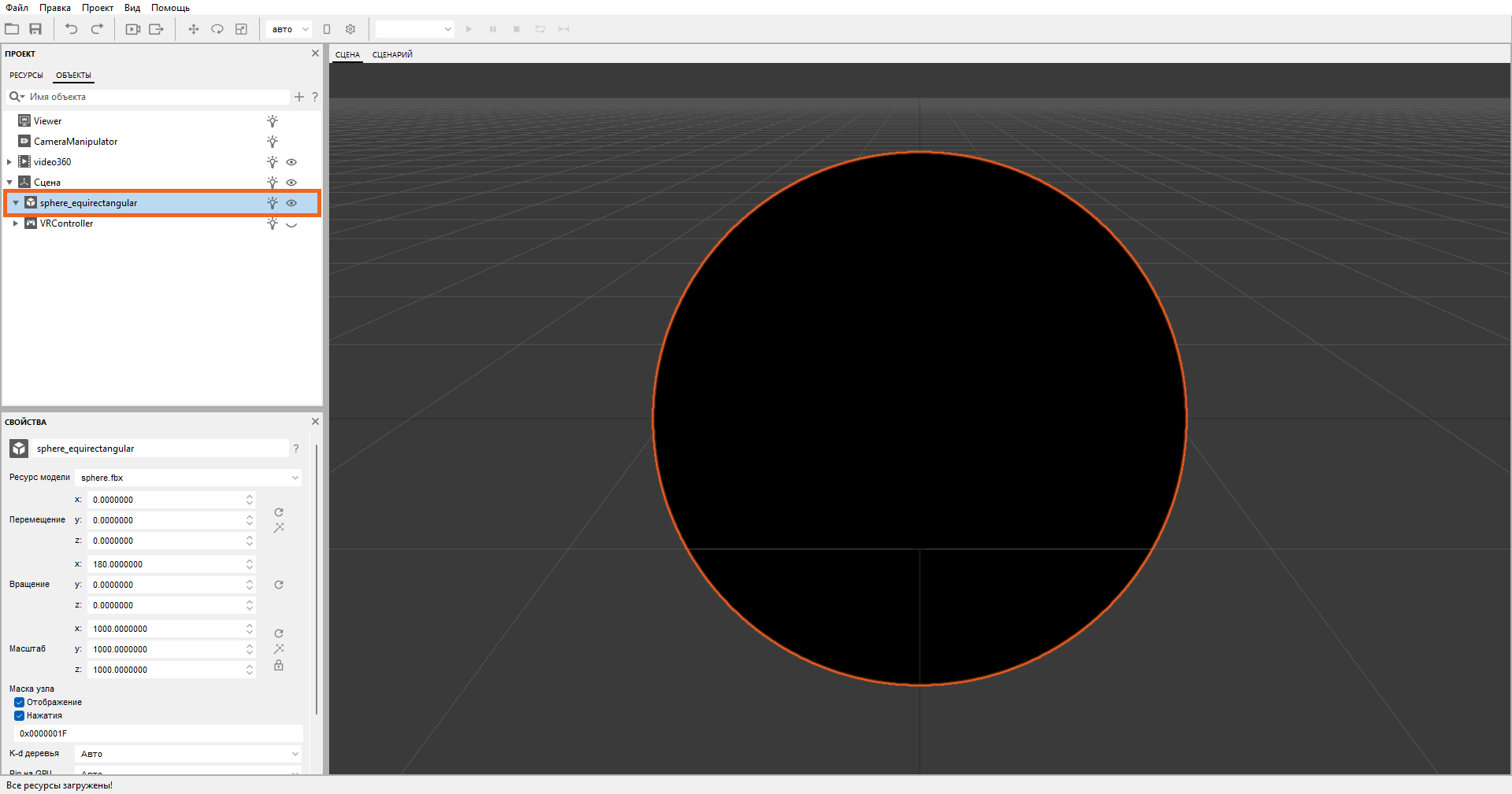 В проекте представлена базовая сцена со сферой, которая используется в качестве объекта - основы. Видео формата 360° или фотопанорамы будут “накладываться” на внутреннюю часть сферы для реалистичного опыта погружения.